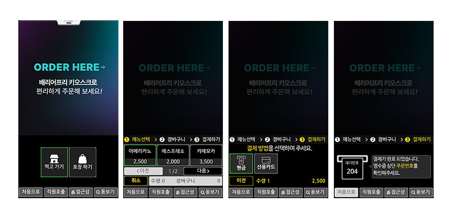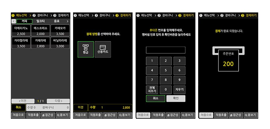 메뉴 이미지를 보면서 주문 > 결제 > 완료